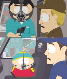 After the release of The Dark Knight Rises, Bane was parodied in Comedy Central's sitcom South Park in the episode "Insecurity" where several of the characters disguise themselves (such as Eric Cartman and Randy Marsh) as Bane to mob the UPS man. The mask itself was altered before the episode premiered.