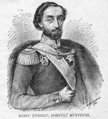 Barbu Dimitrie Ştirbei, also written as Stirbey, (1799 in Craiova – April 13, 1869 in Nice), a member of the Bibescu boyar family, was a Prince of Wallachia on two occasions, between 1848–1853 and between 1854–1856.[1]