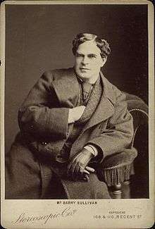 Sullivan was five feet nine inches (175 cm) tall[2] and had a wiry, slight figure which allowed him to play younger parts when he was middle-aged.[1] For a long period Sullivan was one of the finest actors of his period, though at times inclined to err on the robust side.[2] In Melbourne Sullivan's death resulted in lengthy obituaries; he was remembered as an actor and manager of 'more than ordinary talent, combined with considerable force of character, great tenacity of purpose, untiring industry, and a dogged application to the business of his profession'.[4]