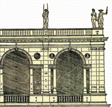 Detail of the upper loggia with two serliana (drawn from I quattro libri dell'architettura).