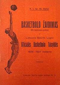 Basketbolo žaidimas (krepšiasvydis) ir Lietuvos sporto lygos oficialės basketbolo taisyklės 1926-27 metams is the first basketball rules book published in Lithuania. It was written by the legendary Lithuanian pilot Steponas Darius, who wished to popularize new sports genres in Lithuania. It is his second book published in Lithuania, followed by the baseball rules book.[1]