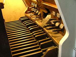 Several sources, including an encyclopedia on the organ, claim that the pedalboard design improvements of the 17th century allowed the organist to actuate the pedals either with the toe of the foot or with the heel.[3] However, organist Ton Koopman argues that "Bach's complete oeuvre [can be played] with the pedal technique of his time, in other words without the use of the heel." Koopman claims that in "Bach's day toe and heel pedalling was not yet known, as is evident from his organ works, in which all the pedal parts can be played with the toe."[5] Interestingly, what evolved as "German" pedal technique in the late 18th and early 19th century promoted heel-and-toe pedaling, while the "French" style was predicated on "toe only" pedal technique.