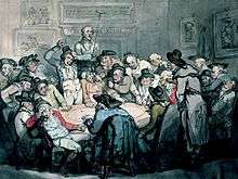 ![]() Thomas Rowlandson painted his version of a gaming den in "The Hazard Room". On the walls is a bouquet of gambler’s delights: boxing, horse racing, the odds of the day, and the patron saint of card games, Edmond Hoyle. | |
