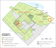In 1975, the Archäologischer Park Xanten (Xanten Archaeological Park), a partial reconstruction of the Roman Colonia Ulpia Traiana, was established and opened for tourism. It is built on the site of the Roman town. Today it is one of the most frequently visited parks in Germany. Among other events there, even the popular TV show Wetten dass..? has taken place in the APX. In 2012, the Archaeological Park was expanded to nearly the whole area of the Roman Colonia after the Bundesstraße 57 moved away from the middle of the area. Further different historical buildings in the town centre were restored, and today in Xanten there is one of the most beautiful city centres in Germany, with many shops, restaurants and cafes in a medieval atmosphere. At the Xantener Südsee and Xantener Nordsee, two lakes connected by a channel close to the localities Wardt and Vynen, the Freizeitzentrum Xanten (Xanten Leisure Center) was established in 1982. Today, it is a popular destination for sailors. On 28 November 1988, Xanten received the title of a Staatlich anerkannter Erholungsort (state-recognized leisure city) as the first such city in the governmental district of Düsseldorf. Between 1990 and 2004, the number of inhabitants rose from 16,930 to about 22,000. Xanten is twinned with Geel in Belgium, Saintes in France and Salisbury in the United Kingdom.