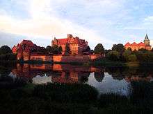 By December 1409 Władysław II Jagiełło and Vytautas had agreed on a common strategy: Their armies would unite into a single massive force and march together towards Marienburg (Malbork), capital of the Teutonic Knights.[29] The Knights, who took a defensive position, did not expect a joint attack and were preparing for a dual invasion—by the Poles along the Vistula River towards Danzig (Gdańsk) and the Lithuanians along the Neman River towards Ragnit (Neman).[3] To counter this perceived threat, Ulrich von Jungingen concentrated his forces in Schwetz (Świecie), a central location from where troops could respond to an invasion from any direction rather quickly.[30] Sizable garrisons were left in the eastern castles of Ragnit, Rhein (Ryn) near Lötzen (Giżycko), and Memel (Klaipėda).[3] To keep their plans secret and mislead the knights, Władysław II Jagiełło and Vytautas organised several raids into border territories, thus forcing the knights to keep their troops in place.[29]