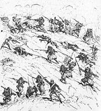 - ↑ De Maussion's two mixed battalions were under the command of chefs de bataillon Beranger and Frauger. They included two companies of the 1st Battalion, 1st Foreign Legion Regiment (Captains Chmitelin and Broussier) and a marine infantry company (Captain Kuntz).