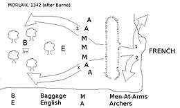 The Battle of Morlaix was a battle fought in Morlaix on 30 September 1342 between England and France. The English besieged the town, but a French relief force arrived. The English constructed a strong defensive position. After repeated attacks, the French forced the English to retreat into the woods. The French force then withdrew. Notably it was the first use of a tactical withdrawal by the English in medieval warfare.