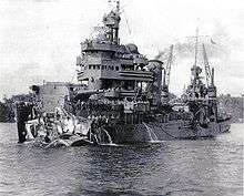 Minneapolis, New Orleans, and Pensacola were able to make it the 19 miles (31 km) to Tulagi on the morning of December 1 where they were berthed for emergency repairs. The fires on Pensacola burned for 12 hours before being extinguished. Pensacola departed Tulagi for rear area ports and further repair on December 6. After construction of temporary bows from coconut logs, Minneapolis and New Orleans departed Tulagi for Espiritu Santo or Sydney, Australia on December 12. All three cruisers required lengthy and extensive repairs. New Orleans returned to action in August, Minneapolis in September, and Pensacola in October 1943.[38]
