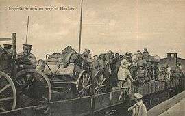 Yinchang, a Manchu noble, reached Hankou by rail and attempted to seize control of the city's northern suburbs. On October 18 more than 1,000 revolutionary fighters attacked Liujiamiao, a train station guarding the northern approach to Hankou, but were driven back and retreated to Dazhimen.[1] In the afternoon the revolutionaries regrouped and, with the help of railway workers, ambushed a train carrying Qing troops heading south. The train derailed and sent the Qing troops fleeing, and more than 400 were killed by revolutionaries. The following day the revolutionary forces, supplemented by enthusiastic volunteers, grew to more than 5,000 and captured Liujiamiao.[1] The revolutionaries on October 20 tried to press on Wushengguan further north but were driven back with serious losses.[1] Nevertheless, their victory at Liujiamiao boosted the morale of the revolutionary movement. On October 22 Hunan and Shaanxi Province both declared their independence from the Qing regime.