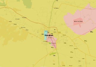 The Battle of Al-Hasakah (2015) started as an offensive launched in the Al-Hasakah Governorate during the Syrian Civil War, in which the Islamic State of Iraq and the Levant (ISIL or ISIS) attempted to capture the city of Al-Hasakah, which was divided into two areas held separately by the Syrian Armed Forces and the Kurdish YPG.[28] On 17 July, YPG-led forces captured all of the roads and villages surrounding Al-Hasakah, fully besieging the ISIL militants remaining inside of the city.[29][30] On 28 July, YPG-led forces and the Syrian Army expelled ISIL from most of Al-Hasakah,[5][3] with two ISIL pockets persisting near the Al-Zuhour District[31] and the southern entrance.[32] On 1 August, the city was fully cleared of ISIL fighters.[33][9][1]