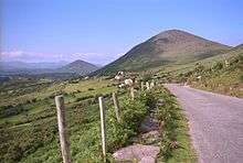 Beara (Irish: Béarra) or the Beara Peninsula is a peninsula on the south-west coast of Ireland, bounded between the Kenmare "river" (actually a bay) to the north side and Bantry Bay to the south. It has two mountain ranges running down its centre: the Caha Mountains and the Slieve Miskish Mountains. The northern part of the peninsula from Kenmare to near Ardgroom is in County Kerry, while the rest forms the barony of Bear in County Cork.