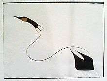 Chee Chee's first exhibition was held in 1973 at the University of Ottawa.[2] Soon after he gained fame as he developed his unique style of clear graceful lines with minimal colour of birds and animals giving sense to emotion and movement. Though his art featured a great deal of iconography often used by Canadian First Nations artists, Chee Chee had denied his art had symbolic meaning. He instead referred to the animals featured in his art as "creatures of the present". He also specifically referred to himself to an Ojibway artist, as opposed to allowing himself to be categorized under the broader net of simply an "Indian" artist.