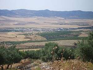 View of the northern Tunisian plateau at Téboursouk, near Thugga (site of extensive Roman ruins). The upper Bagradas (modern Medjerda) river valley, was a prime wheat-growing country that supplied grain to Rome. Conflict between new Roman agriculture and the traditional grazing rights of Berber pastoralists led to the insurgency of Tacfarinas.