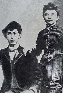 In 1889, 16-year-old Bessie had a daughter, Esther, with Boris and in 1891 they were married.[2] Esther died at the age of 6 of diphtheria. They also had 3 sons.[3] Their first son, Harry, started acting at the age of 13 in the play The Pintele Yid (A Little Spark of Jewishness, 1909), became a director of the Federal Theater's Yiddish Theater Project and directed his father in films The Jewish King Lear (1934) and The Bar Mitzvah Boy (1935). Their second son, known as Mickey, took after his father's romancing ways and romanced 2 women at the same time which led to a dramatic murder-attempt/suicide in 1931, reminiscent of his Aunt Emma Thomashefsky Finkel's notorious 1904 affair. Both Mickey and his Aunt Emma were left paralyzed by the attempted murders by jealous mates and both later died of complications related to their wounds; Emma, many years later, in 1929, and Mickey in 1936.[4] Their third son, Theodore, changed his name to Ted Thomas and became a stage manager. One of Ted Thomas's sons is the noted conductor Michael Tilson Thomas.