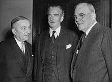 At the Dumbarton Oaks Conference in August 1944, representatives of the UK, US, Soviet Union and China, although never meeting all together directly, held talks on peace and post-war security and established the framework for the post-war United Nations organization.[4] The conversations were held in two phases, since the Soviets were unwilling to meet directly with the Chinese.[5] In the first phase, representatives of the Soviet Union, the UK and the US convened between August 21 and September 28. In the second, representatives of Republic of China, the UK and the US held discussions between September 29 and October 7. The representatives were Edward R. Stettinius, US Under-Secretary of State for Foreign Affairs, Andrei Gromyko, Russian Ambassador to the US, Sir Alexander Cadogan, British Under Secretary of State for Foreign Affairs (replaced by Lord Halifax for the second phase) and Wei Tao-ming, Chinese Ambassador to the US.[6]