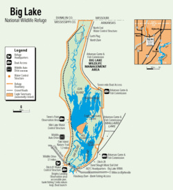 - ↑ "Big Lake National Wildlife Refuge", Encyclopedia of Arkansas History and Culture, http://www.encyclopediaofarkansas.net/encyclopedia/entry-detail.aspx?entryID=2418, accessed 19 Jan 2015