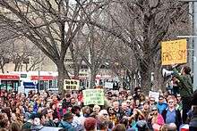 Through 'we.leadnow.ca', forty-five protests occurred across Canada on March 14, 2015, which organizers called a Day of Action.[44] The rally drew thousands of demonstrators across fifty-five Canadian cities.[45] NDP leader Thomas Mulcair joined demonstrators in Montreal in a march to Justin Trudeau's office, while Green Party leader Elizabeth May joined the rally in Toronto.[45]
