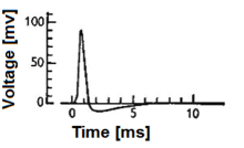 Fig 1. A neuronal action potential ("spike"). Note that the amplitude and the exact shape of the action potential can vary according to the exact experimental technique used for acquiring the signal.