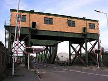 A red girdered bascule bridge at Tower Road connects the Seacombe district of Wallasey with Birkenhead. Known as the Four Bridges, as originally four movable bridges existed along Tower Road: two between the Great Float and Alfred Dock, one between the Great Float and Wallasey Dock and one between the Great Float and Egerton Dock.[16] When originally built, all four were hydraulic swing bridge types. In the 1930s most were replaced by bascule bridges.[17]