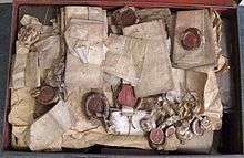 There are a number of copies of the foundation charter in the Dunbar Archives at the University of Aberdeen.[3] An English translation at the beginning of the charter is as follows: