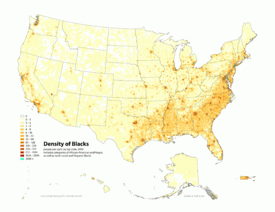The US Census reported that in 2000, the United States had 96 counties with a black population percentage of more than 50%. 95 of these counties were located across the Coastal and Lowland South in a loose arc related to traditional areas of plantation agriculture, including the Mississippi Delta.[4]