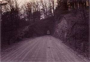 In October, 1890 an electric interurban was running from Newark to Granville. The line wasn't opened to Zanesville until 1903 due to difficulties cutting a pathway through the gorge. An interurban tunnel 19.5 feet (5.9 m) high and 327 feet (100 m) long was blasted through solid rock to complete the job. The interurban ran on the opposite side of the Licking River from the B&O Railroad.