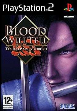 Blood Will Tell: Tezuka Osamu's Dororo, released as Dororo (どろろ) in Japan, is a PlayStation 2 game released by Sega. It is based on the Japanese manga series Dororo, which was created by Osamu Tezuka. It concerns a hero named Hyakkimaru, who has had much of his body stolen by forty-eight fiends, and has prosthetic replacements. Along with his ally, the thief Dororo, Hyakkimaru must defeat all forty-eight fiends.