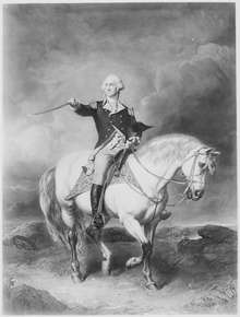 Blueskin was a gray horse ridden by George Washington. He was one of Washington's two primary mounts during the American Revolutionary War. The horse was a half-Arabian, sired by the stallion "Ranger", also known as "Lindsay's Arabian", said to have been obtained from the Sultan of Morocco.[1][2] Blueskin was a gift to Washington from Colonel Benjamin Tasker Dulany (c. 1752–1816) of Maryland. Dulany married Elizabeth French, a ward of Washington's, who gave her away at her wedding to Dulany on February 10, 1773.[3]