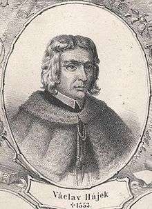 Wenceslaus Hajek of Libočan (Czech: Václav Hájek z Libočan; German: Wenzeslaus Hajek von Libotschan; Latin: Wenceslai Hagecii, Wenceslai Hagek a Liboczan; d. 18 March 1553) was a Bohemian chronicler, author of the Annales Bohemorum (Kronyka Czeská or Kronika Česká [in modern Czech]). The Annales was translated into German by Johann Sandel (1596), and was long considered one of the best sources of Bohemian history. Modern criticism has found it to be very inaccurate as a description of the times described, although still useful for information about the literary traditions of the time.