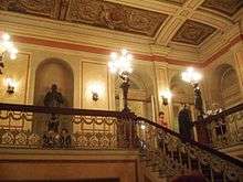 The main actors of that period were Yury Yuryev and Nikolay Monakhov. Many brilliant painters worked for the theater including Alexandre Benois, Mstislav Dobuzhinsky, Vladimir Shuko, Nikolay Akimov; among the composers working with the theater were Boris Asafiev and Yuri Shaporin. The theater produced mostly classical romantic dramas like Don Carlos (1919), Othello (1920), King Lear (1920), Twelfth Night (1921), Ruy Blas (1921), The Robbers (1919), and Le Médecin malgré lui (1921).[3] Since the mid-1920s the theater added to its repertoire plays of German expressionists including Gas by Georg Kaiser, Virgin Forest by Ernst Toller, and, influenced by expressionism, Machine Mutiny (Bunt Mashin) by Alexey Tolstoy.[3]