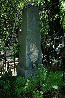 His gravestone is ornamented with a reproduction of the groundplan of the colour-pattern of lepidopteran wings from his textbook.