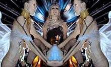 Oscar Moralde from Slant Magazine noted that in the video, "Gaga fully embraces the monstrous as a part of her." Moralde further explained that previously the singer had acknowledged her role as "Mother Monster", but never to the visceral, fully embodied extent that she does in the video. "The things that are monstrous, the things that are different—for Gaga, those are the things that are beautiful," he concluded.[103] Gina Serpe from E! Online criticized it for being a "Madonna rip-off", while Matthew Perpetua of Rolling Stone noted similarities to some of Madonna's work and the imagery from in the 1927 German expressionist film, Metropolis.[111][112] Ann Powers from Los Angeles Times noted that the video paid tribute to the Goddess movement and feminism. According to her, with the video Gaga made goddess culture accessible to the mass, by portraying images borrowed from fine art, cinema and cool subcultures. Examples given by her included the portrayal of Rico as her partner, instead of a conventional-looking male or female consort. Powers further added that "Gaga has found a way to place female empowerment at the center of her vision without sacrificing the gains she makes by being a daddy's girl or a 'boy toy'."[113] Megan Powers from Time criticized the video and Gaga's usage of shock-imagery, which she still found "strange".[114] The video has been noted for its cultural references and artistic similarities, not only to other recording artists such as Jackson and Madonna, but to Greek and Roman mythology, surrealism and the work of Swiss painter H. R. Giger and late fashion designer Alexander McQueen.[106]