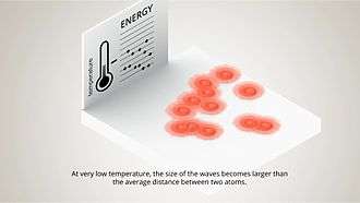 A Bose–Einstein condensate (BEC) is a state of matter of a dilute gas of bosons cooled to temperatures very close to absolute zero (that is, very near 0 K or −273.15 °C). Under such conditions, a large fraction of bosons occupy the lowest quantum state, at which point macroscopic quantum phenomena become apparent. It is formed by cooling a gas of extremely low density, about one-hundred-thousandth the density of normal air, to ultra-low temperatures.