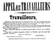 The ideology behind the explosion in Bourses du Travail, popularized by revolutionary syndicalists like Fernand Pelloutier, intended to create in them the key organizational component of radical economic transformation. By acting as future co-ordinating bodies, facilitating communication between sydicates (unions), the Bourse du Travail would co-ordinate production and consumption in the absence of both the state and the private ownership of the means of production. These institutions were central to the notion of Revolutionary Syndicalism which dominated the Confédération Générale du Travail, France's largest labor federation in the first twenty years on the 20th century. Pelloutier and other revolutionary syndicalists argued that the Bourses—small scale, local, self made—were the guarantee that the CGT would remain both directly democratic and revolutionary.[3] They saw labor organizations as interconnecting in three ways: a national federation uniting each specific union (traditional craft or trade unions); a national federation of all unions (in this case, the CGT); and all local workers, across union and political boundaries, united in the Bourse du travail. Supporters of the Bourse movement believed this structure last should become the most important form of workers' association.[4]