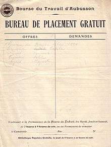 The Bourse du Travail (French for "labour exchanges"), a French form of the labour council, were working class organizations that encouraged mutual aid, education, and self-organization amongst their members in the late nineteenth and early twentieth centuries.