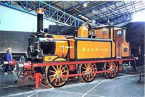 A Terrier tank engine, built by the LBSCR in 1880, was named Boxhill after the station.[9] It was used to haul commuter trains in South London and Surrey until the 1920s, when it was moved to become a shunting engine at Brighton. Unlike other engines of its class, its smokebox was not modified in the early 20th century, and it was restored by the Southern Railway in 1947 to its original condition and painted in its original Stroudley yellow ochre livery.[10] It is now preserved at the National Railway Museum in York.[9]