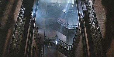 The Bradbury Building is featured prominently as a setting in films, television, and literature – particularly in the science fiction genre.[23] Most notably, the building is the setting for both the climactic rooftop scene of Blade Runner (1982), as well as the set of the character J. F. Sebastian's apartment[24] in which much of the film's story unfolds.