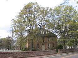 The Brafferton, built in 1723, is located southeast of the Sir Christopher Wren Building, facing the President's House on the campus of the College of William and Mary in Williamsburg, Virginia.