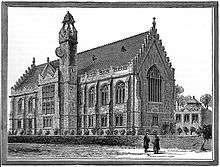 By 1870 the headmaster (Rev John William Caldicott) told the Endowed Schools Commission that the school was "full to overflowing" with 240 boys. However, it was significantly less well endowed than Bristol's other secondary schools (Queen Elizabeth's, Red Maids' and Colston's), and its now dilapidated buildings were located in the wrong area of the city for pupils who mostly lived in Clifton and Redland.[4] At that time, Bristol had substantial hospital endowments (second only to London and Edinburgh) but these were mostly spent on charity rather than education. The assistant charity commissioner proposed a scheme that would reorganise the objectives of the endowed schools and secure funding for the Grammar School and the new Clifton High School for Girls. After several years of debate and negotiation the initiative was approved in 1875,[5] and in 1877 a new location in Tyndalls Park was agreed.