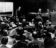 During 36 days of official investigations (spread over two months), testimony was recorded from nearly 100 witnesses in the form of answers to set questions that the process was designed to answer. These questions, combined with sometimes extensive cross-examination, resulted in over 25,000 questions being recorded in the official court records.[9] With a cost of nearly £20,000 (£1,676,602 at today's prices), it was the longest and most detailed court of inquiry in British history up to that time.[10] Those testifying included surviving passengers and crew members, as well as captains and crew members of other ships in the vicinity, expert witnesses, government officials, and White Star Line officials and ship designers.