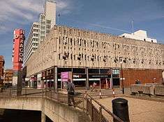Plans for the mall were made by the Reading Borough Council in 1956, however it took more than a decade to find a suitable site and buy it.[2] The mall was originally known as the Butts Centre, and was named after the adjacent St Mary's Butts. The current name relates to Reading's principal pedestrian shopping street, Broad Street, and the mall is situated at the west end of the street. It was opened in 1971. The mall was purchased by Doughty Hanson & Co in June 2001 and sold in March 2004.[3] During this period they implemented a business strategy to update and refurbish the mall to modern standards.[4] During this time footfall increased 50% and net operating profits increased 38%.[5]