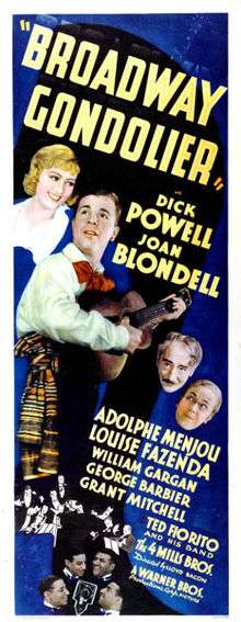 Broadway Gondolier (1935) is a musical film directed by Lloyd Bacon. The film was released by Warner Bros., and featured Dick Powell, Joan Blondell and Adolphe Menjou.