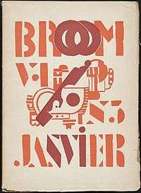 Broom: An International Magazine of the Arts was a little magazine founded by Harold Loeb and Alfred Kreymborg and published from November 1921 to January 1924. Initially, the magazine was printed in Europe, first in Rome[1] and then in Berlin, with the intention of bringing new, avant-garde art back to the U.S.