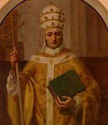 Pope Leo IX (21 June 1002 – 19 April 1054), born Bruno of Egisheim-Dagsburg, was Pope from 12 February 1049 to his death in 1054.[1] He was a German aristocrat and a powerful ruler of central Italy while holding the papacy. He is regarded as a saint by the Roman Catholic Church, his feast day celebrated on 19 April.[2]