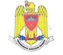 The Bucharest Garrison (Garnizoana Bucureşti) is a military garrison located in Bucharest and subordinated to the Romanian Land Forces. The Garrison was initially formed in 1939 by a royal decree and in 1940 it became an independent army corps. After the end of the World War II, due to a Romanian - Soviet treaty as well as due to orders received from the Allied Control Commission, the garrison was disbanded.
