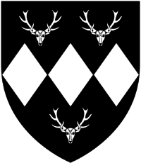 arms of de Budockshed: Sable, three fusils in fess between three buck's faces argent[6]