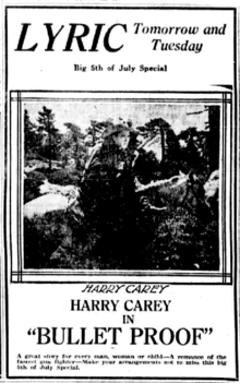 - ↑ "Bullet Proof: Two-Fisted Action in Harry Carey's Latest". Motion Picture News. New York City: Motion Picture News, Inc. 21 (19): 3901. May 1, 1920. Retrieved 2014-04-03.