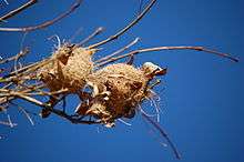 Like other members of Icteridae, Bullock's orioles prefer habitat edges. They especially prefer riparian corridors, open deciduous woodland, and scrub forest.[4] Observations during the breeding season indicate that members of this species prefer areas with an abundance of cottonwood, pecan, and (if near water) willow.[4][5] In dry areas, this species prefers salt cedar and mesquite.[5] In California, eucalyptus trees are used as major sources of nectar.[4][5]