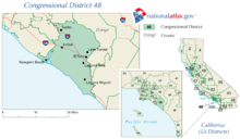 The district is located in Orange County in southern California, and includes the cities of Aliso Viejo, Dana Point, Irvine, Laguna Beach, Laguna Hills, Laguna Niguel, Laguna Woods Lake Forest (formerly known as El Toro), Tustin, and parts of Newport Beach, San Juan Capistrano, and Santa Ana.