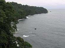 Bioko is just 32 km (20 mi) off the coast of Cameroon, on the continental shelf. The island used to be the end of a peninsula attached to the mainland, but was cut off when sea levels rose 10,000 years ago at the end of the last ice age.[14] With an area of 2,017 km2 (779 sq mi) it is the largest island in the Cameroon line.[15]